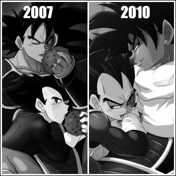 最近又在整理文件,數了一下DB的圖已經超四位數了,囧[還有三位數的草稿沒畫這種事我會告訴你嗎?]06年開始弄這個站,轉眼已經五年過了,畫風也被時光之把殺X刀砍的XX都認不出了0-0,小VEGE也進化出了VEGE妹紙,雖然一樣是平胸=[]=